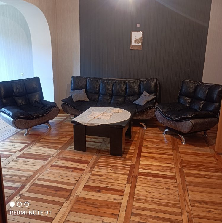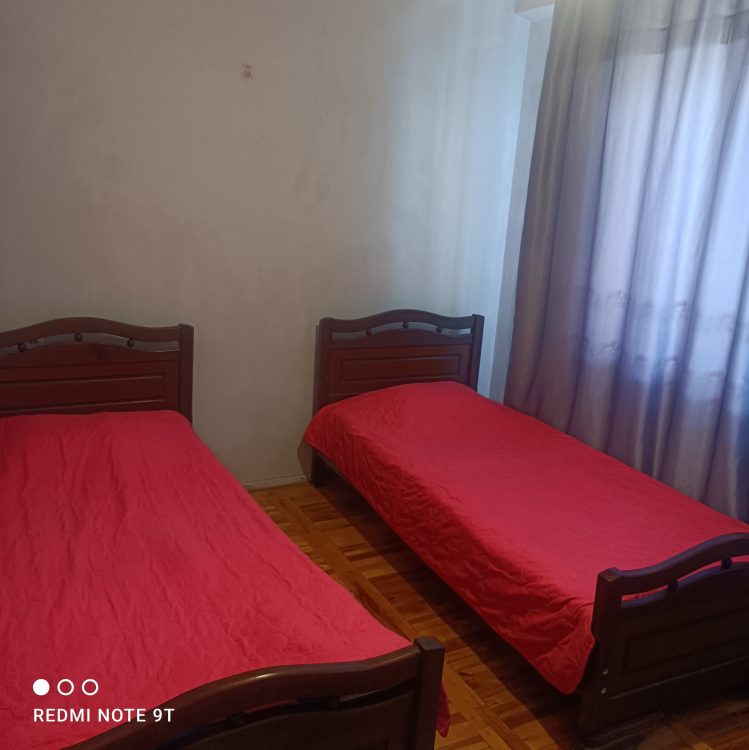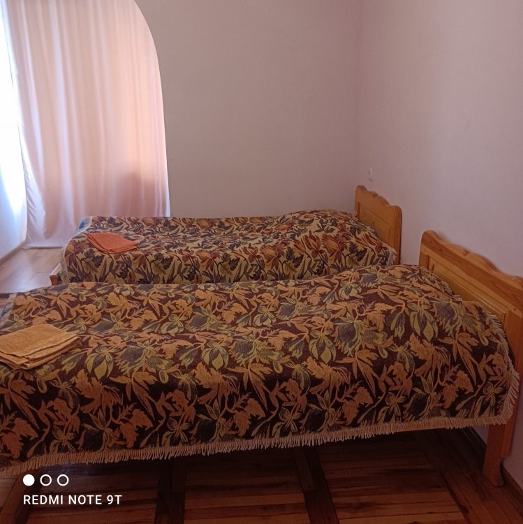 Apartment for rent, 130 GEL per day, on the first floor. There are 2 bedrooms in total, each bedroom has 2 beds, there is also a living room, a kitchen with its own equipment and 1 bathroom.