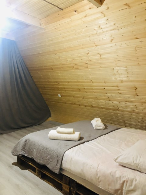 კოტეჯი გათვლილია 6 ადამიანზე თავისუფალი განთავსებით. ასევე პირველ სართულზე დამატებით გასაშლელი სავარძელი.